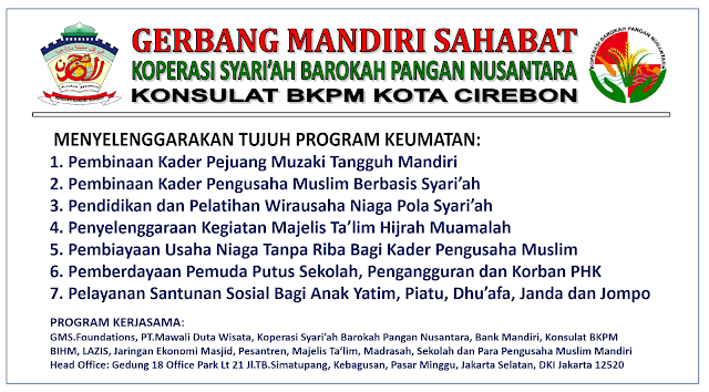 Program Bina Kader Pengusaha Mandiri dimotori oleh GMS.Foundations bekerjasama dengan PT. Mawali Duta Wisata, CV.Gerbang Mandiri, Bank Infaq Hijrah Muamalah, Konsulat BKPM Daerah, Koperasi Syari'ah Barokah Pangan Nusantara, Ikatan Yayasan Muslim dan Para Pengusaha Muslim Nusantara.